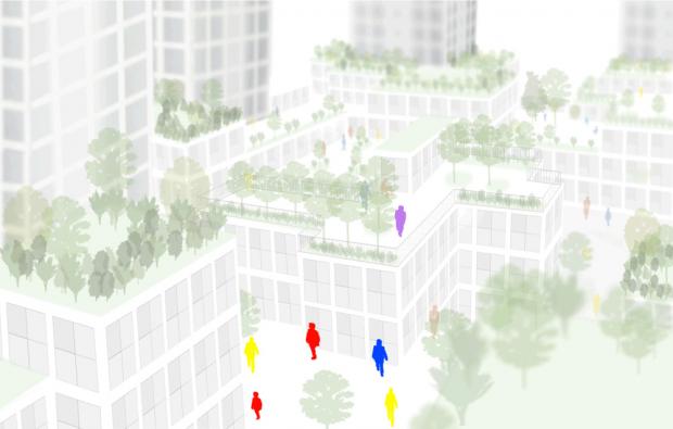 中国山東省に計画中の約100万m²の大規模開発計画。ショッピングモール、集合住宅、事務所、ホテル、スポーツ施設等が入る大規模な複合建築。近傍には動物園や遊園地、大きな池がある南山公園に面していて、良好な景観をもっている。高層棟は集合住宅、オフィス、ホテル棟になる。低層部は立体的に起伏のある構成とし、商業施設やオフィス、住居などが入る。また、緑の多い計画とし、豊かな都市環境をつくる。