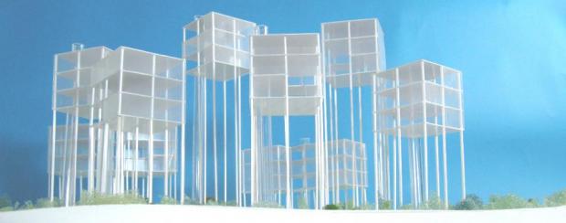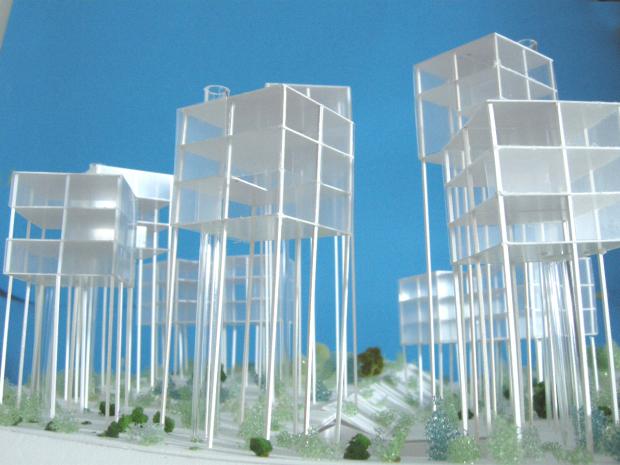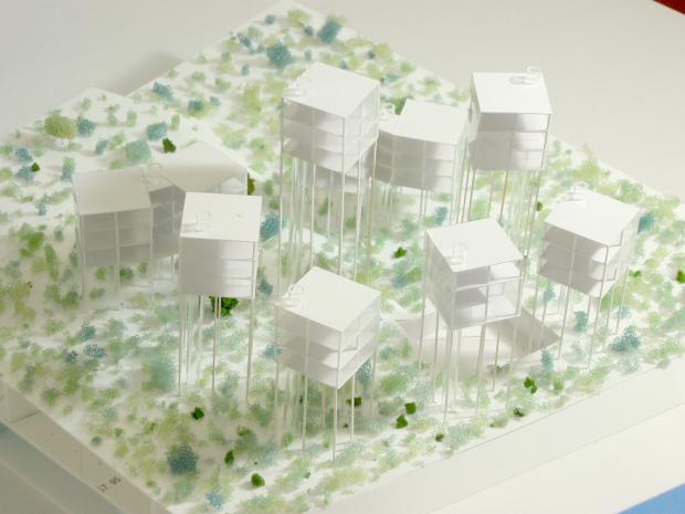 中国山東省に計画した別荘計画。敷地前面には、広大な池があり、すべての住戸からその池への眺望を確保できるようにした。高床式の建築形式とし、グランドレベルはフルーツ農園になっている。